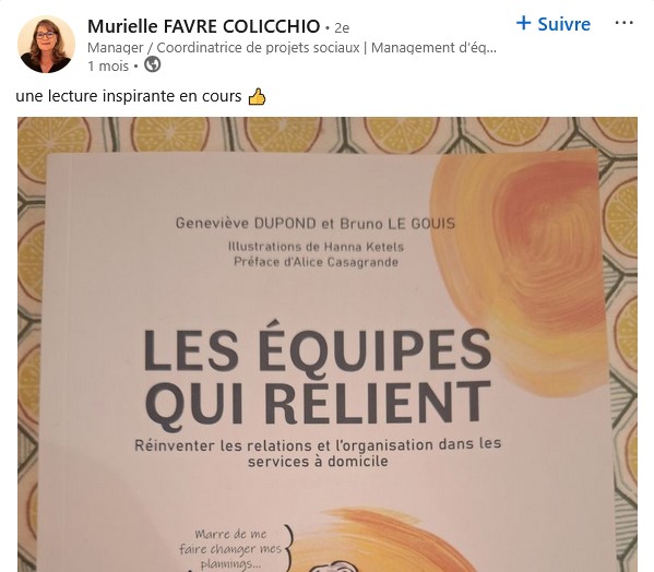 Notre livre Les Équipes Qui Relient relate nos retours d’expérience des premiers services à domicile que nous avons accompagnés vers une organisation en équipes dites autonomes.